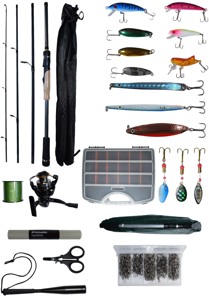 Startpakken til den nye fisker indeholder alt det man har brug for, for at starte fisketuren: